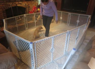 This last week has shown itself to be another busy time for the puppies. It started with a visit to the vet to make sure they are all healthy and ready to be released to their new families. The car ride there together, in an oversized crate, was not their favorite part of the trip, but with the hugs and kisses from the office staff, I am sure they felt it was worth it. With a clean bill of heath, their next adventure was to be Puppy Aptitude Tested. This testing done by a stranger to them is to help determine their personalities. This information, as well as my observations throughout the weeks, will help determine which family they should be placed with. My friend Pat administers the test, and it is hard to tell who enjoys it more - she or the pups. Right before they leave here, they will be getting a bath and another nail clipping. Ugh! Neither is a favorite of the puppies, but it goes quickly, and before you know it they are back with their siblings to play somemore.