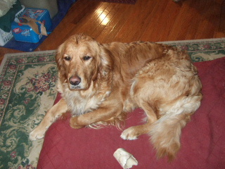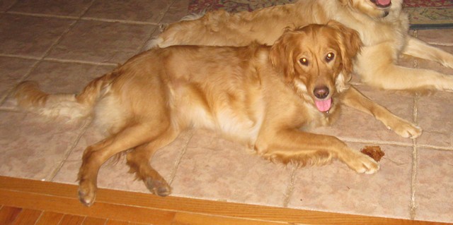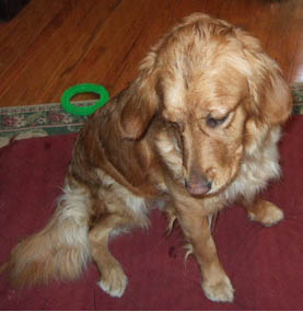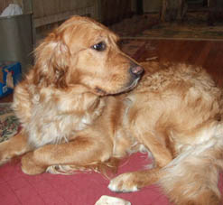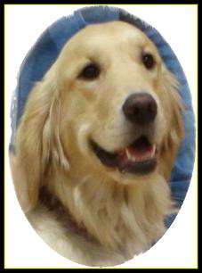 | NOTE: Gable, Butterscotch's dad, is the Golden Retriever presently in the Blue Buffalo Dog Food TV Commerical. Click to see it. |