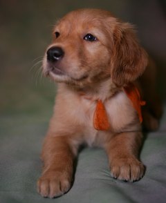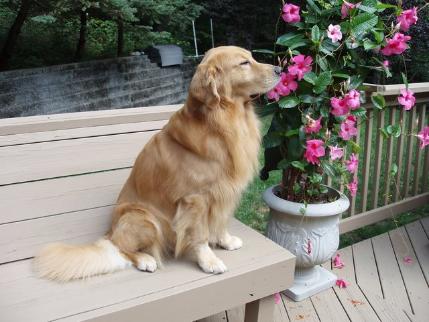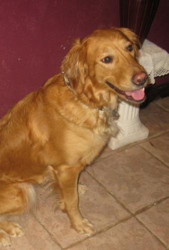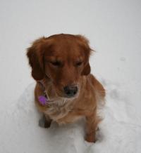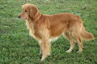 | MAPLE and Scout may be having some good news the end of April as they were just recently bred. She is AKC registered and received health clearances: OFA for her hips, CERF for the eyes, and the SAS for her heart.to confirm she is healthy for breeding. Maple is a self confident golden who loves being with people, as goldens are so well known for. She is so happy to see visitors she wags her tail so vigorously that her whole back end wags too!. Her fur has a rich lighter red coloring with slight wavy curls adorning her shiny coat. |