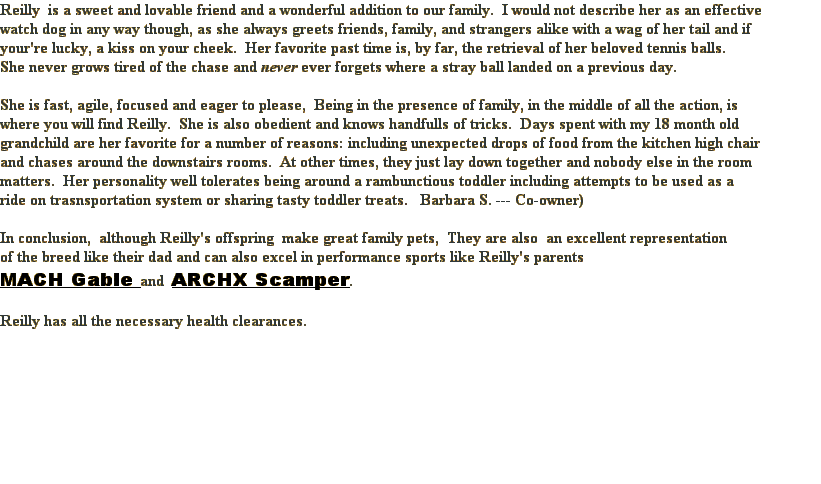 | CLICK HERE FOR * More pictures ** Pedigree *** Clearances of REILLY |