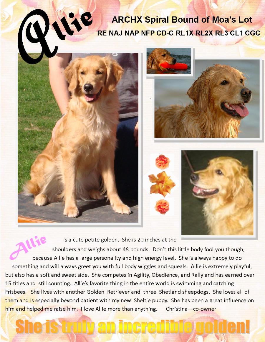 | Allie has her eye, heart, hip, and elbow clearances. |