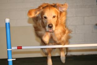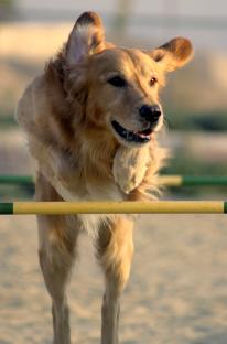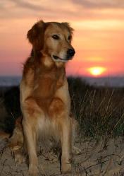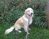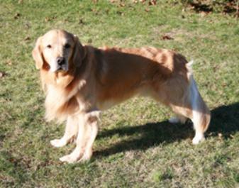 | DERBY has developed into a very handsome boy, with a wonderful disposition and temperament. Although he weighs almost 70 lbs., he is convinced that curling up in someones lap or cuddling next to the family's other dog Keebler at night is a most appropriate behavior. Derby displays a unique style only to himself - a combination of intelligence, and compassion, with a strong sense of curiosity mixed in. In addition to earning several agility titles, Derby stays active as the demo dog for the Pet First Aid and CPR classes his owner teaches. Derby will also be the Golden Retriever seen on the cover of A & P's new version of dog food later this year. He lives to learn and produces smiles everywhere he goes. Derby is a bundle of canine cheer and his offspring will exemplify the outstanding quality of this breed. |