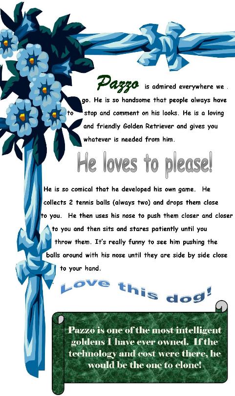 | Click on paw to see Pazzo's Pedigree, Clearances, and more pictures. |
