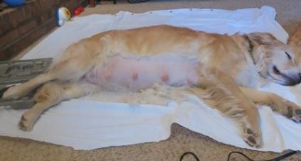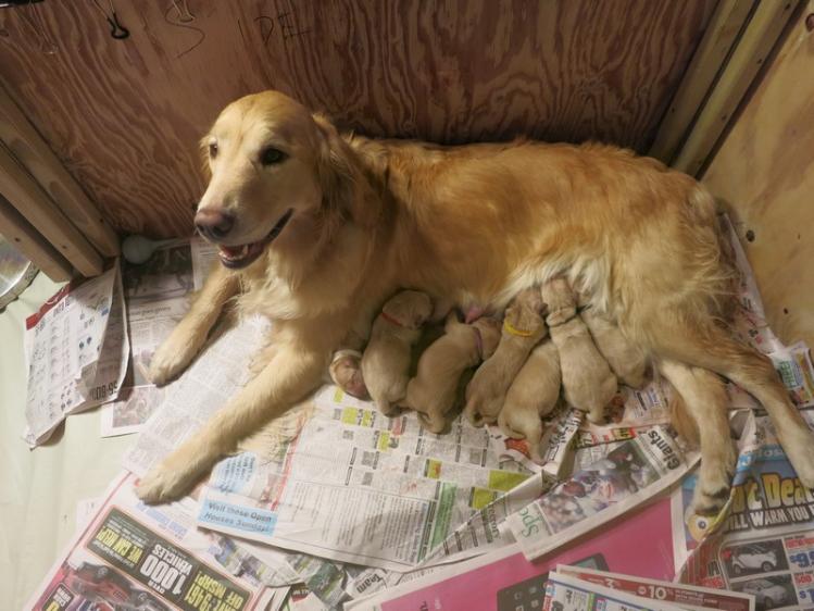 Picture 1: All 7 pups have finally made in into their new wonderful world and Brazin seems to be pretty happy about that. I am sure, not only because her ordeal is over, but also because she has been nesting for several weeks now preparing for the arrival of her new babies.