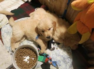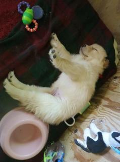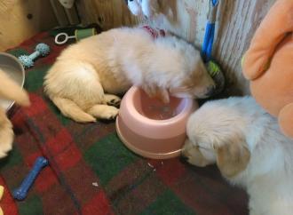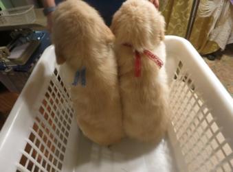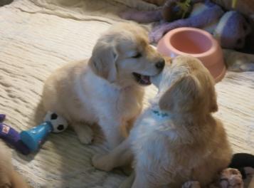 With the pups now 2 weeks older, they are weighing in the 9 to 10 pound