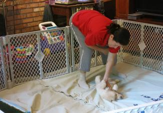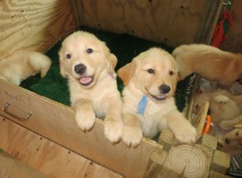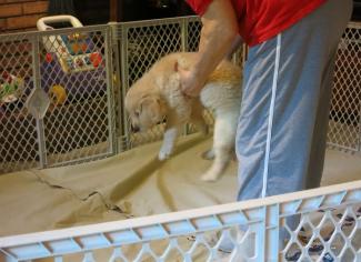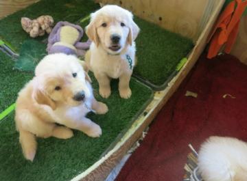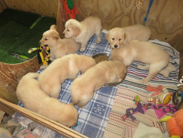 anyone approaches the pups' pen, they all come running over to say