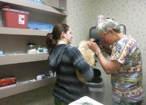 back in the car again, for their visit to the veterinarians office for a health